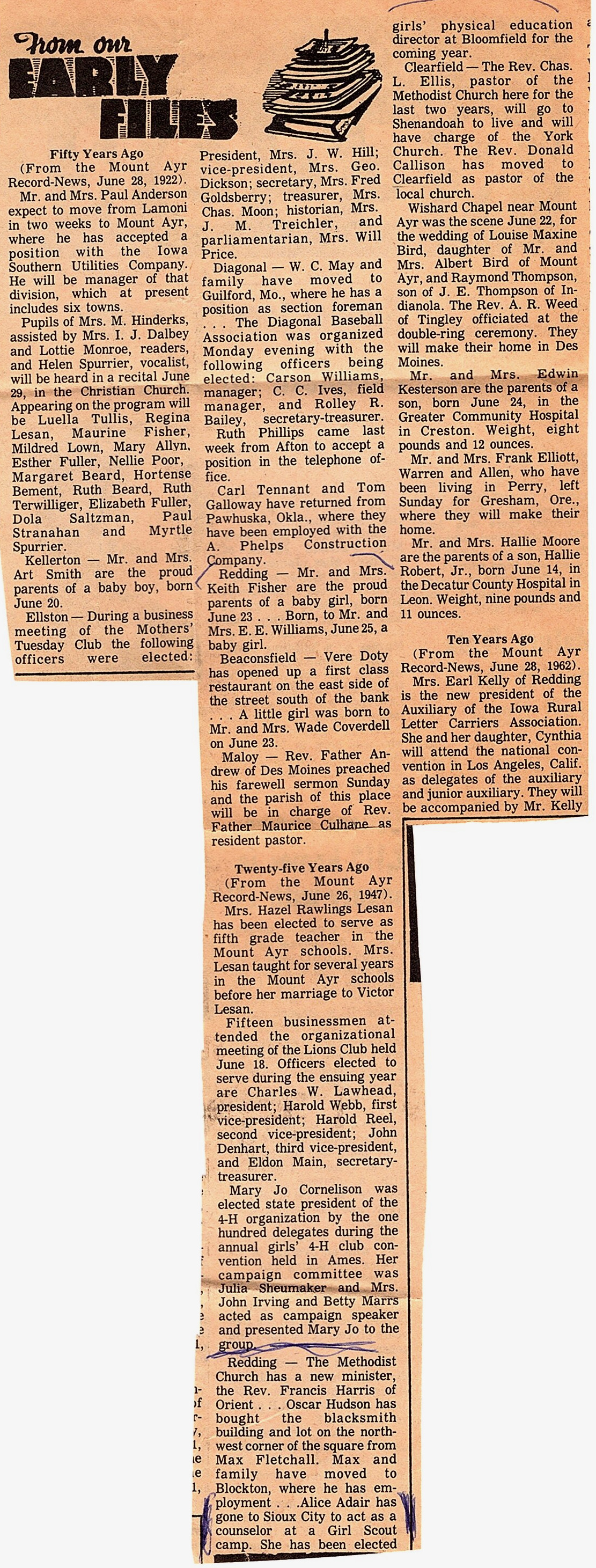 Mary writes about Alice anniversary, Alice as Girl Scout counselor in Sioux City in 1947, chiggers, Earl & Jennette fishing, Helen's silver dollar stake, Emerson neighbor Grace, Marie and Paul Devine.
