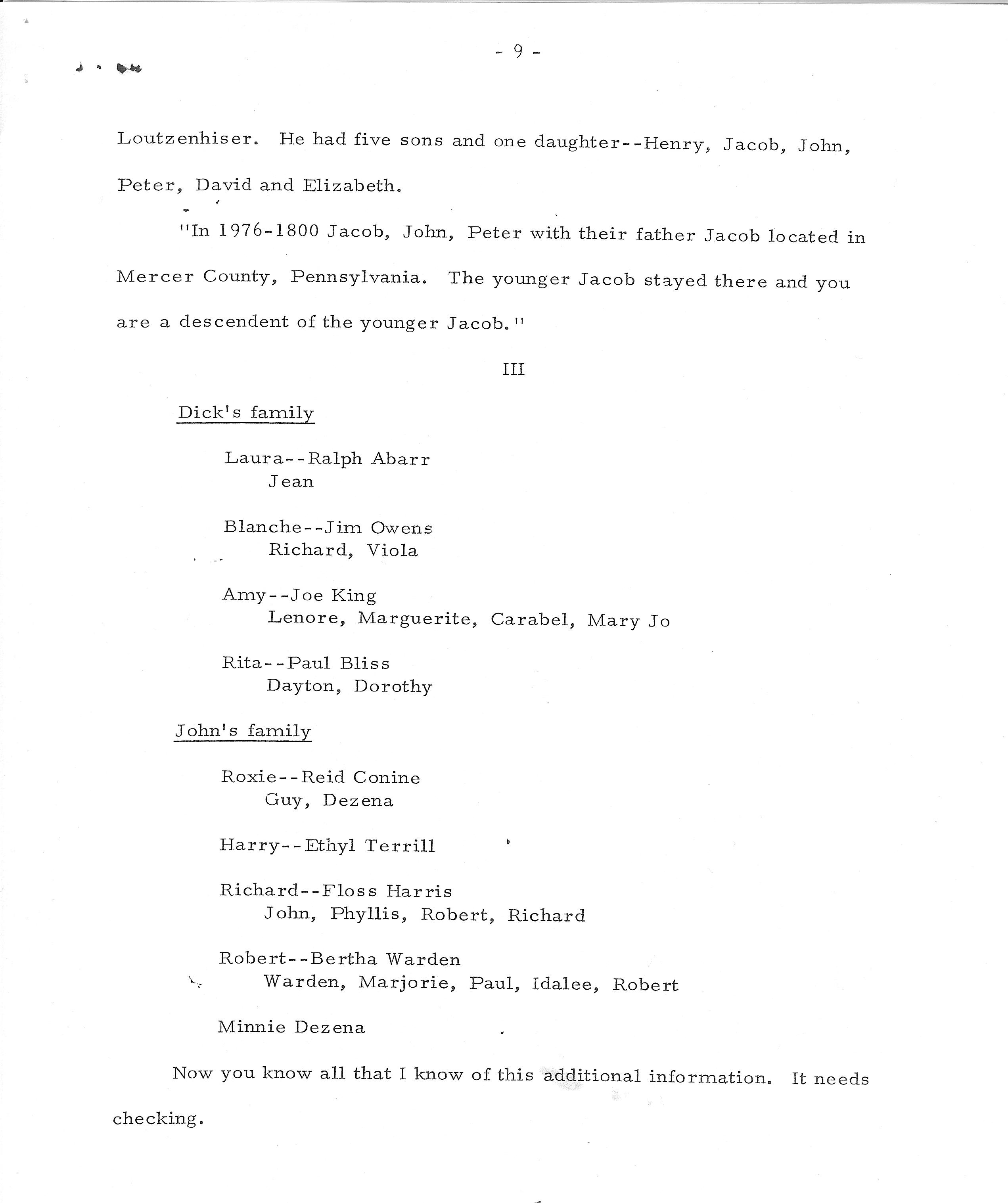 -- Writings about John and Dick Loutzenhiser and their families –by Minnie Dezena Loutzenhiser