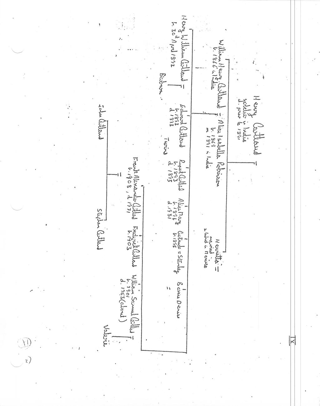 We have a list of 200 Cartlands births from 1837 1894, deaths from 1837 to 1860 and 37 marriages for 1837 to 1871. We intend to complete the search and to conduct similar researches at the General Register in Dublin (Eire) Belfast (Northern Ireland) and Edinburgh (for Scotland). We will eventually be able to construct very nearly complete pedigrees of everyone with the name living in the UK and for Eire for 150 years. We already have a fairly clear picture of the main families as you will see from the enclosed genealogical tables. We will also consult parish registers and wills for the earlier periods and with luck we should be able to trace most families at least to the early 18th if not mid 17th centuries (I think he means the early 1800s if not to about 1750).
