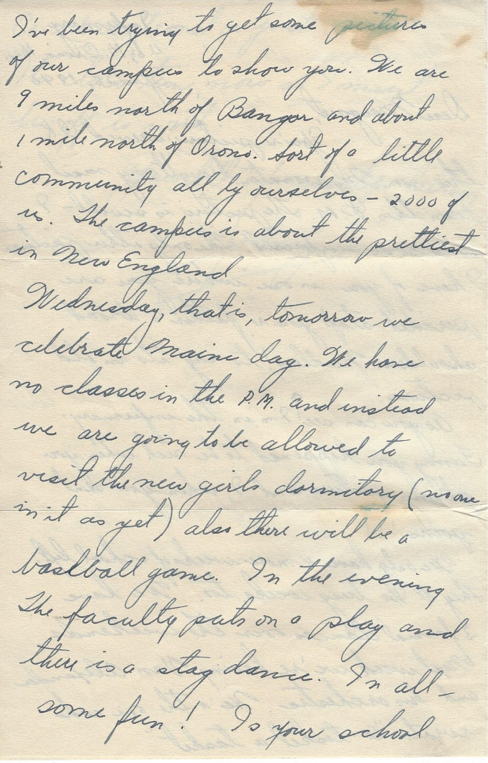 Letter written by 'Johnny' while attending school in Orono, Maine
