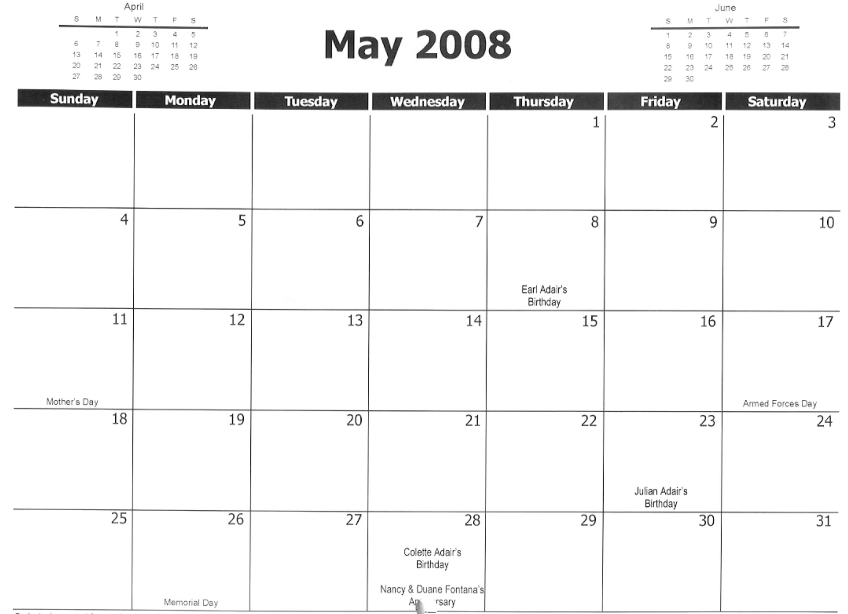 ADAIR MAIL – 2008 (Calendar done by Rich Kruse)