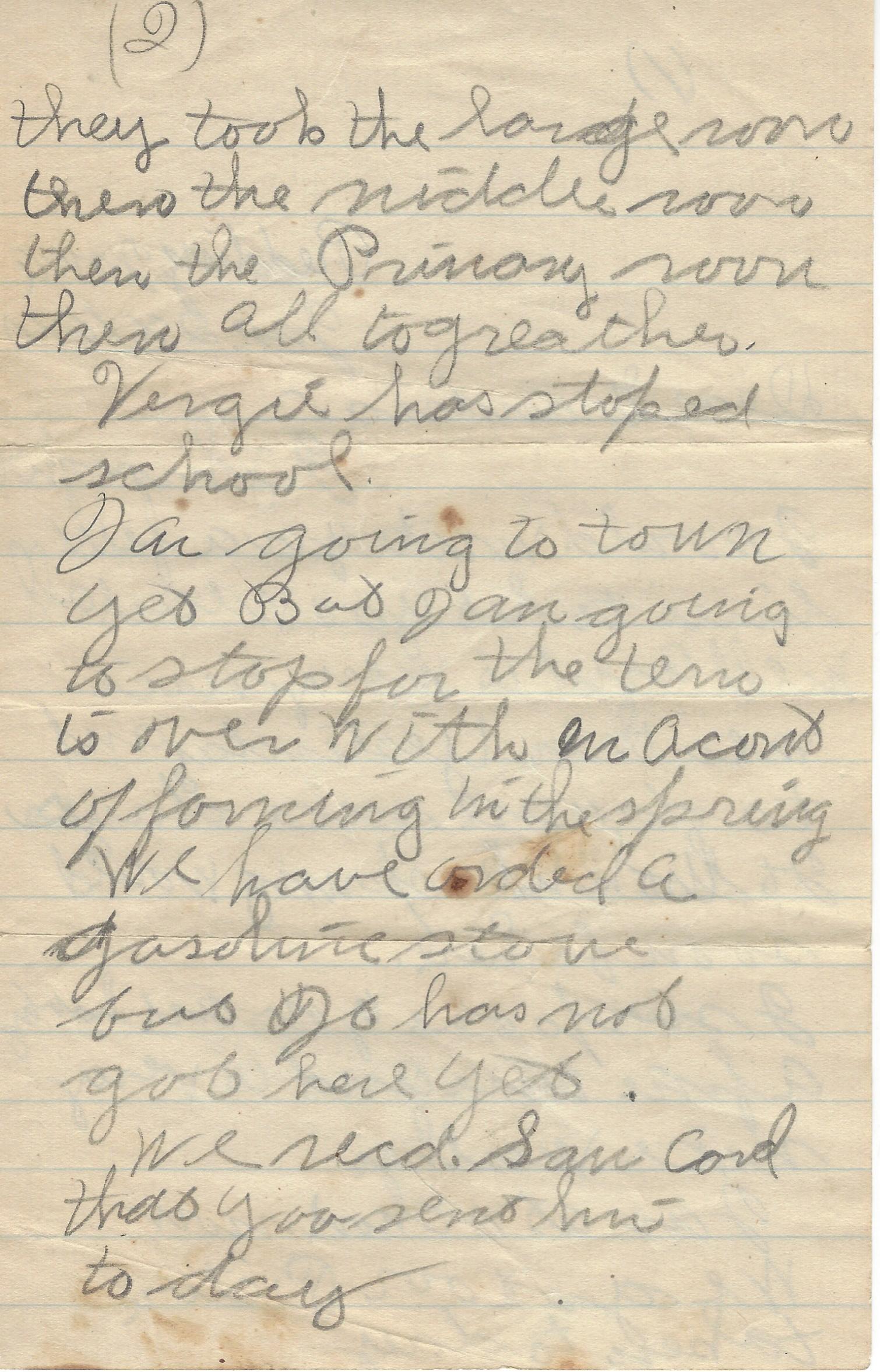 I'm am going to town yet. But I am going to stop over for the term is over. With an account of farming in the spring. We have ordered a gasoline stove but it has not got here yet.