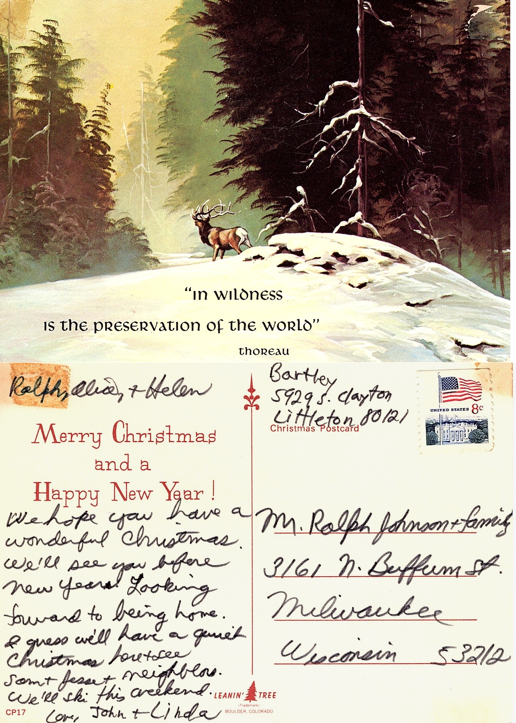 We hope you have a wonderful Christmas. We'll see you before New Years. Looking forward to being home. I guess we'll have a quiet Christmas here & see Sam & Jessie & neighbors. We'll ski this weekend.