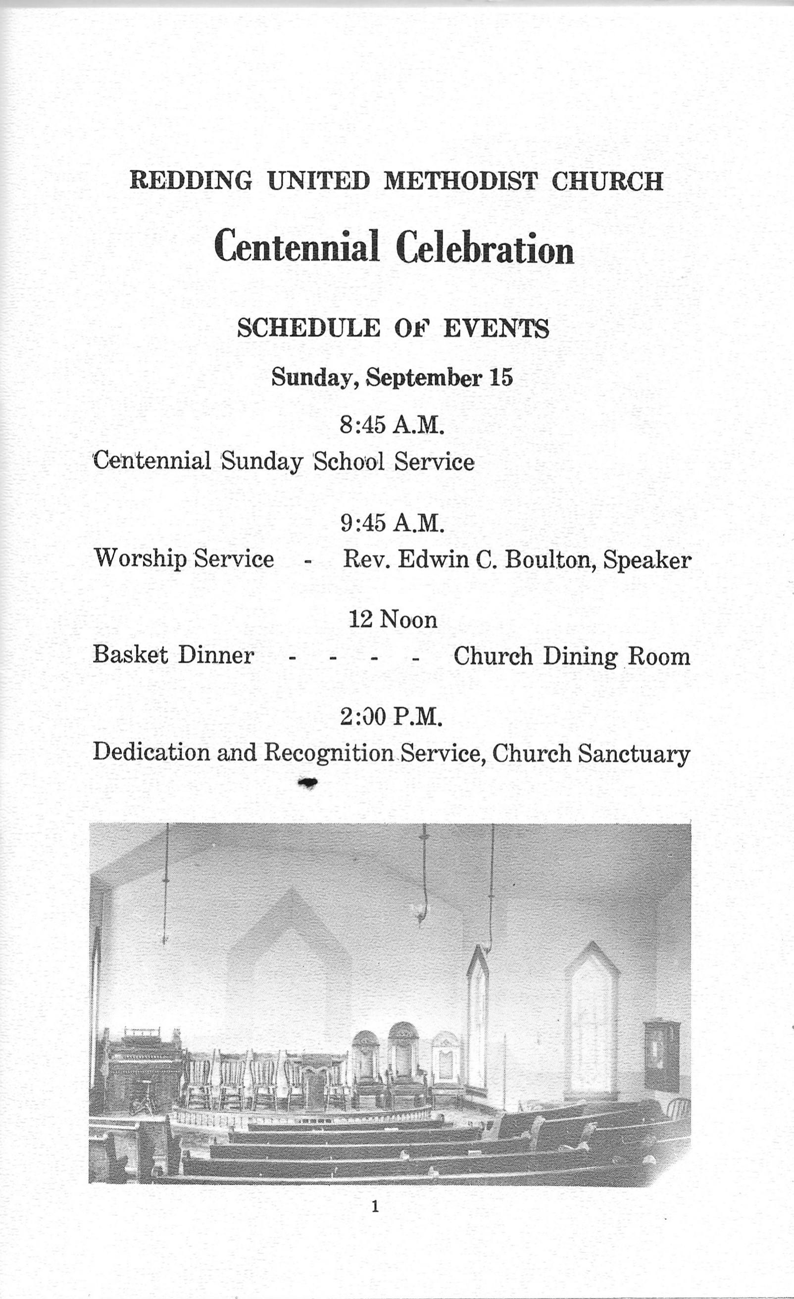 Centennial Observance of the United Methodist Church, Redding, Iowa 1974