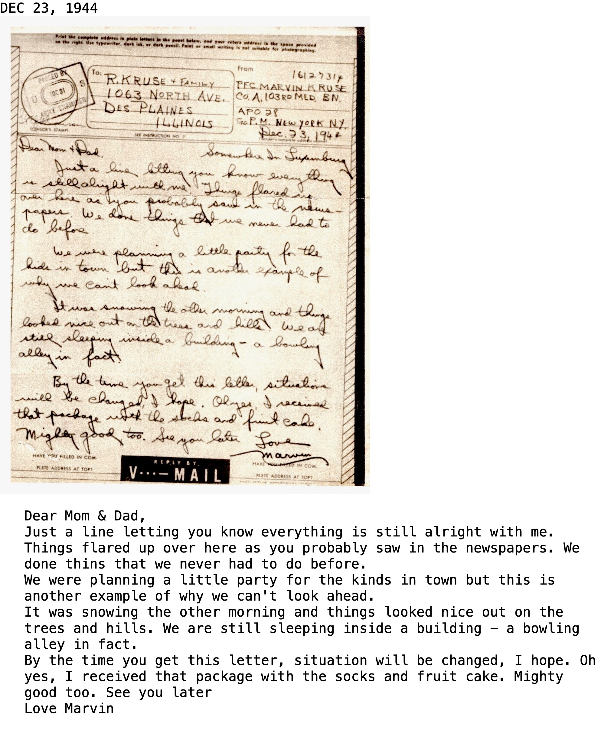 These are letters written by Marvin Kruse in Europe 1944-1945.
